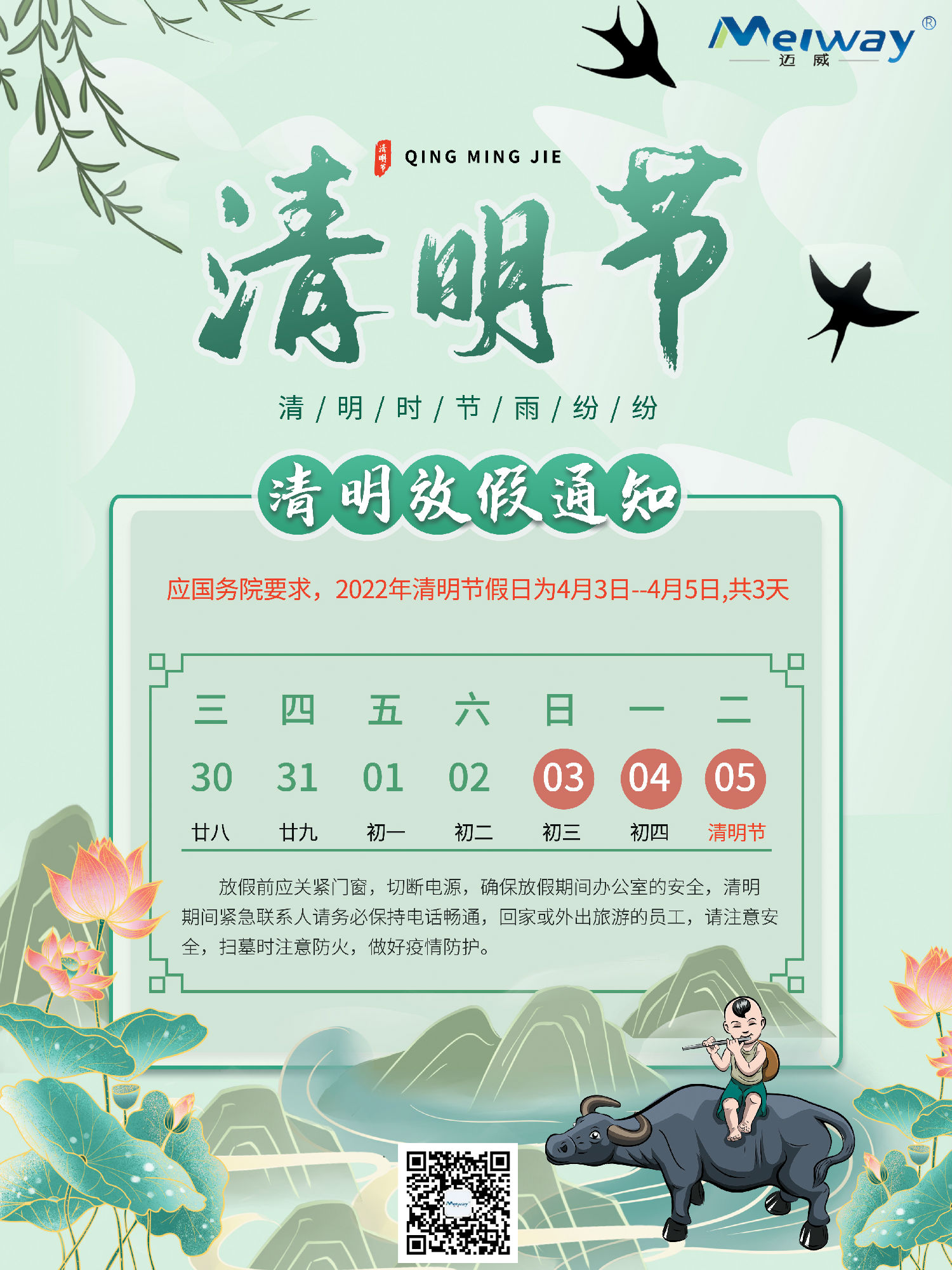 邁威2022年清明放假通知