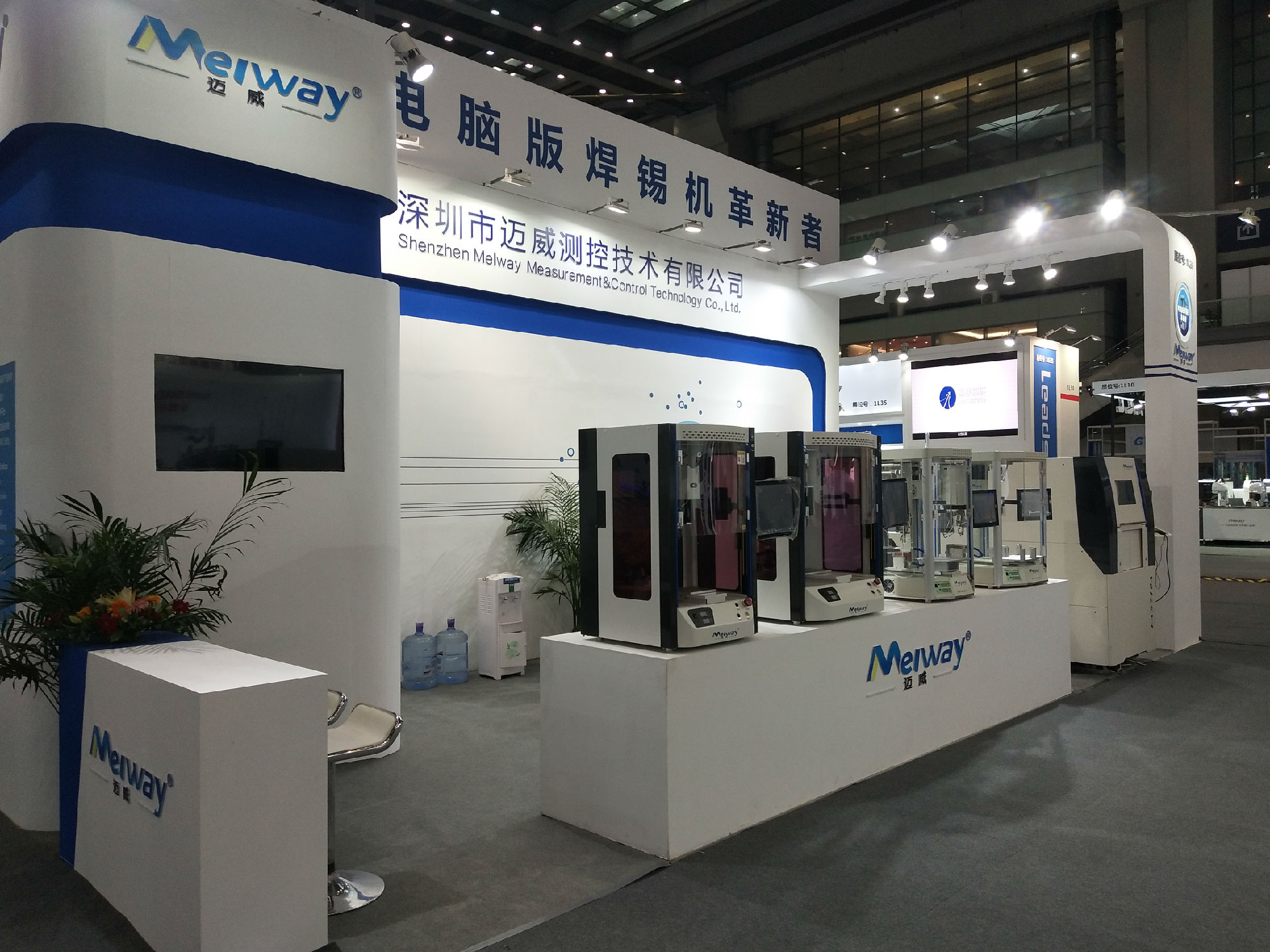 展會(huì)中,邁威展示了最新技術(shù)的自動(dòng)焊錫機(jī),包括第七代桌面式焊錫機(jī)、模組式在線焊錫機(jī)、激光焊錫機(jī)等,其中桌面式焊錫機(jī)、在線式焊錫機(jī)和激光焊錫機(jī)在展會(huì)現(xiàn)場(chǎng)吸引了大量客戶的關(guān)注。